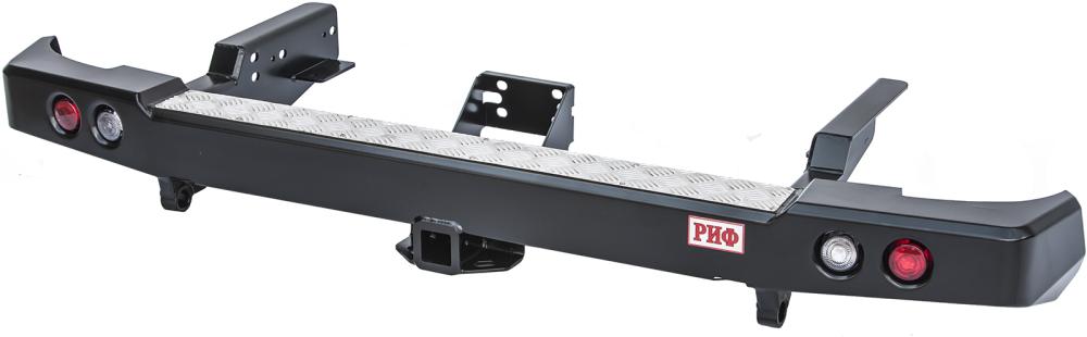 Бампер РИФ силовой задний УАЗ Пикап 2005+ с квадратом под фаркоп и фонарями, стандарт: описание, фото, видео, характеристики, условия доставки и покупки оптом и в розницу, отзывы покупателей. Большой каталог Бамперы на официальном сайте интернет-магазина для внедорожников Автовентури