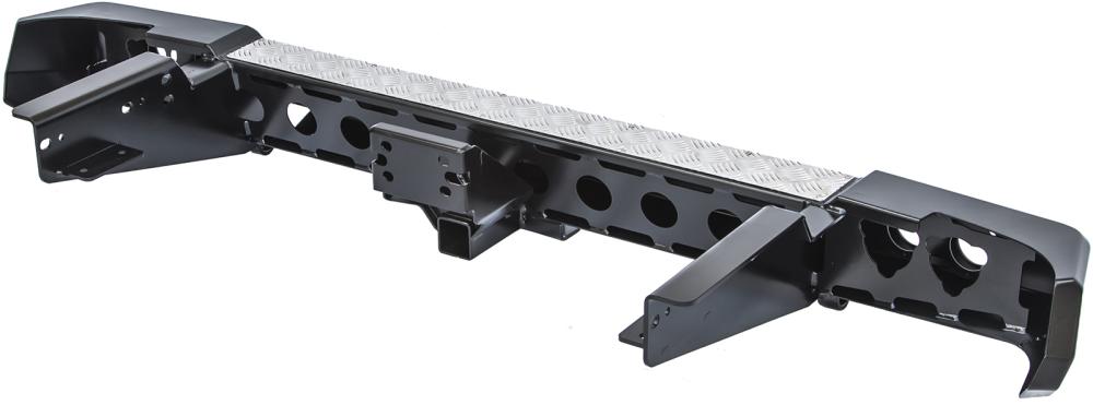 Бампер имеет упоры под реечный домкрат, буксировочные проушины и ответную часть с сечением 50×50мм (американский стандарт) для установки фаркопа и любого другого быстросъемного оборудования. Тяговое усилие фаркопа — 3500 кг.