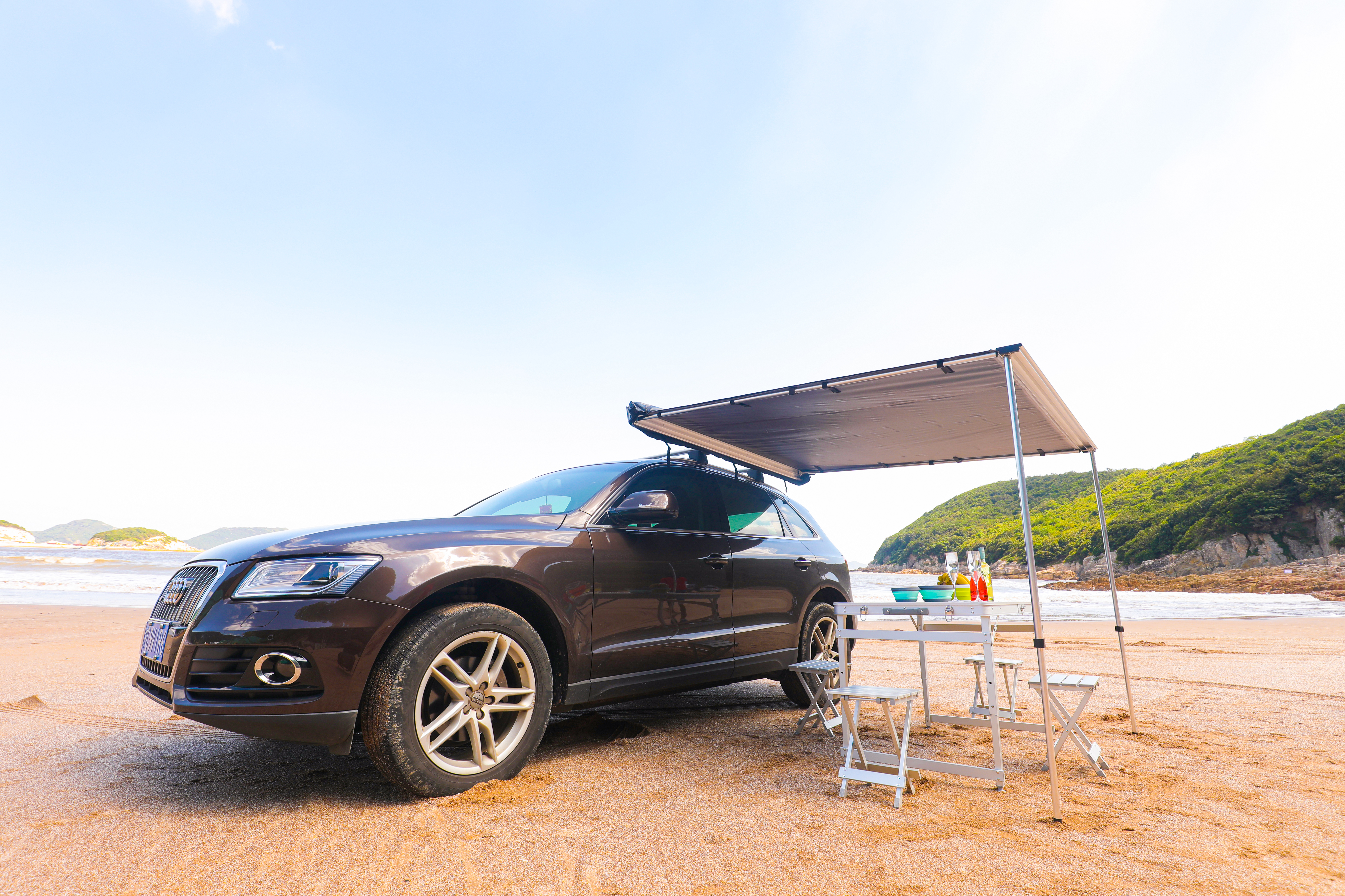 Размер тента в рабочем состоянии: 2 метра по длинной стороне (вдоль автомобиля) и 2,5 метра по вылету. Такой тент позволяет с комфортом разместить рядом с автомобилем трех-четырех человек.