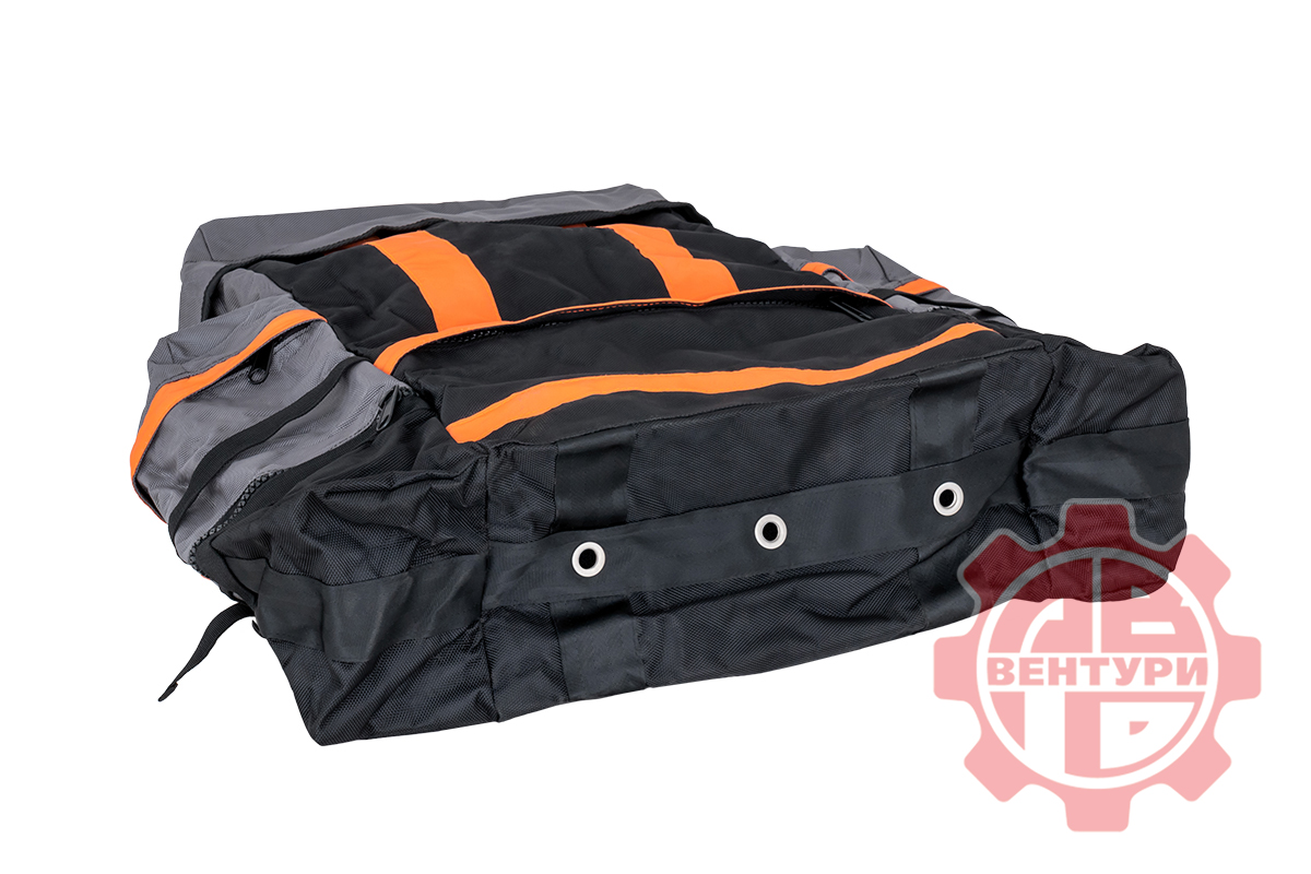 Багажная сумка представляет собой один большой отсек по центру с вертикальной загрузкой и два боковых вспомогательных отсека с таким же типом загрузки. Внешняя поверхность сумки выполнена из прочного материала. Мыть такую сумку можно как снаружи, так и внутри. Кроме прочего, внизу предусмотрены сливные отверстия для воды.
